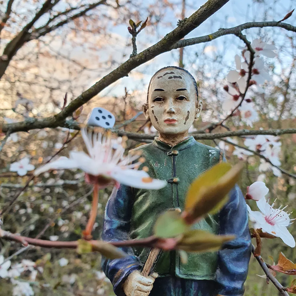 Chaque image accueille un dé, clin d’œil au geste gracieux du jeu : jouer sans l’enjeu de gagner ou de perdre. Jouer avec le hasard ; se jouer du hasard. Jouer avec le roulement des événements petits ou grands.