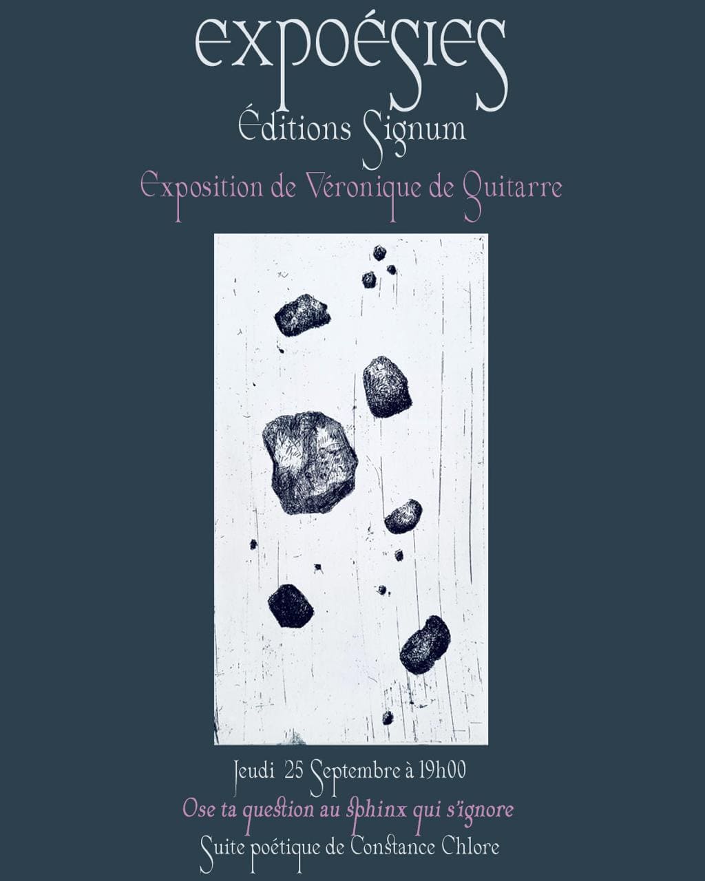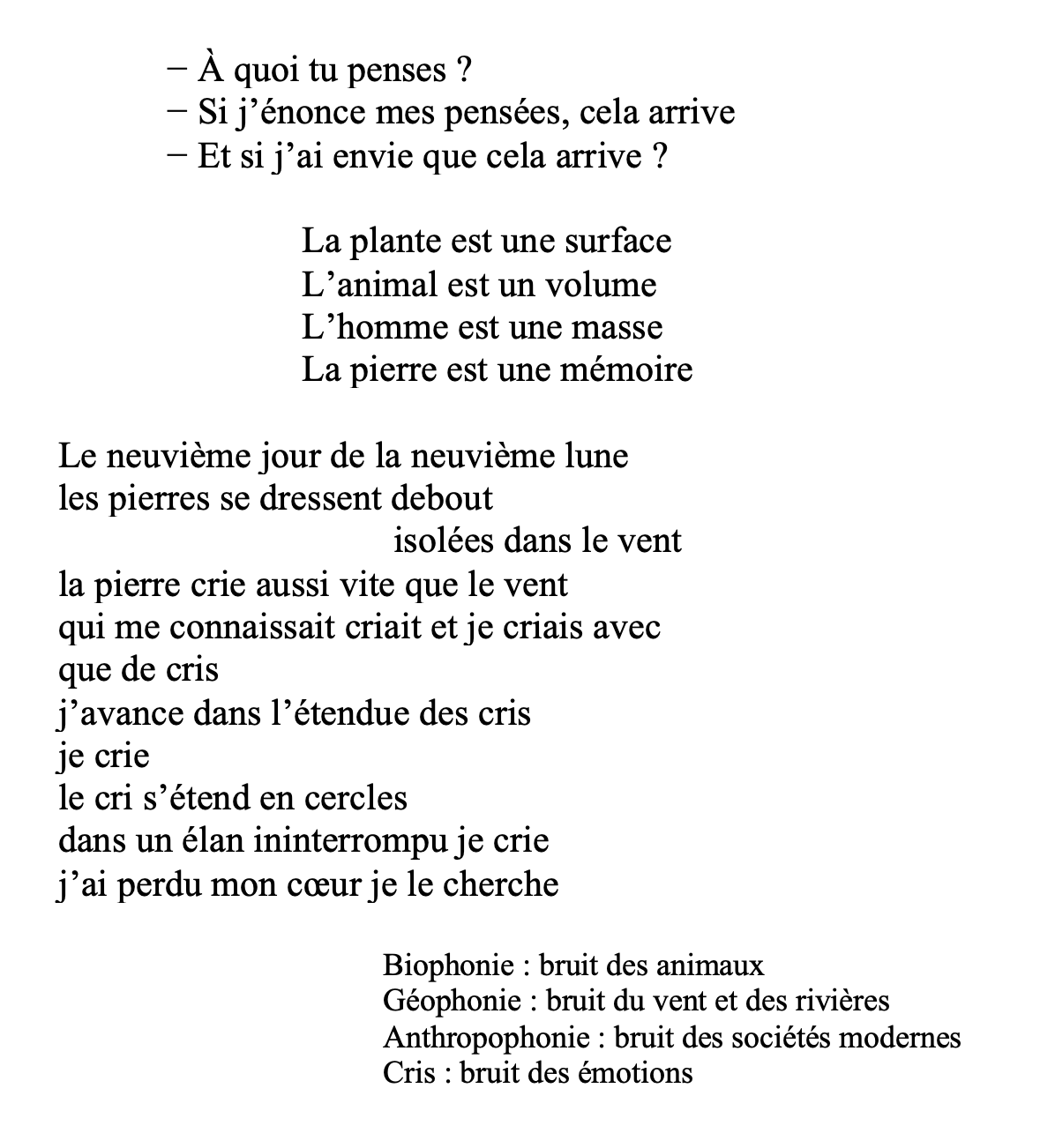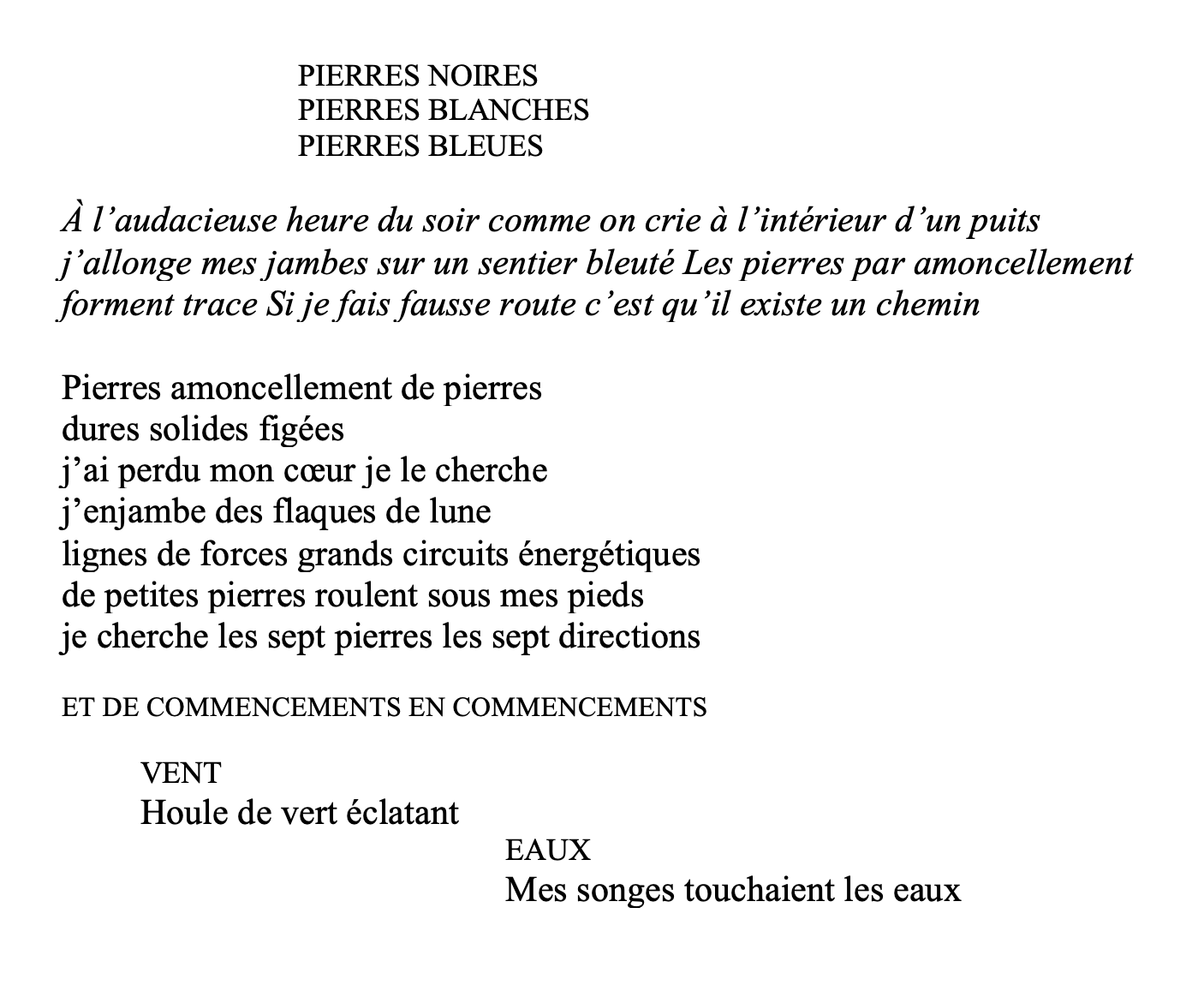 Le projet de ce livre a été envisagé comme une quête de la vie et ses énigmes, un voyage à deux qui s’est poursuivi sur deux années en échangeant nos images et nos lectures. Les pierres trouvées ont été le début de notre histoire. Les éléments (eau, air, terre, feu) comme le végétal, nous livrent les secrets de la création de la vie. Ainsi le vivant et le cosmos sont devenus les objets privilégiés de notre recherche et questionnement.